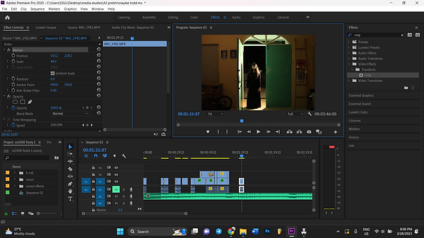 First, I imported all the chosen video clips into Premiere Pro. Then, I cropped every clip to the desired length to arrange into the sequence in order of the script.